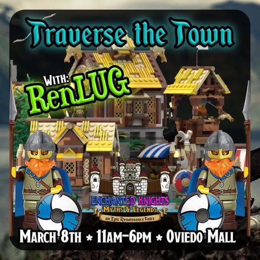 - Saturday, March 8th (International Women’s Day) – Enchanted Knights: Myths & Legends, an Epic Renaissance Faire – Oviedo Mall – RenLUG will be in attendance with Ancient Myths & Vikings themed LEGO® displays and costumes.